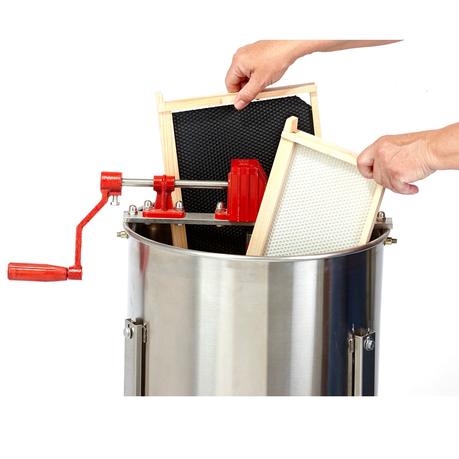 Speed up your honey harvest with the Little Giant® 2-Frame honey extractor. This manual extractor spins honey out of the combs of a bee hive frame through centrifugal force.