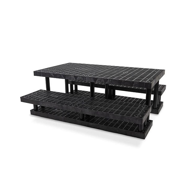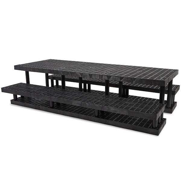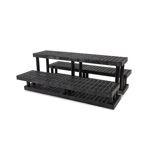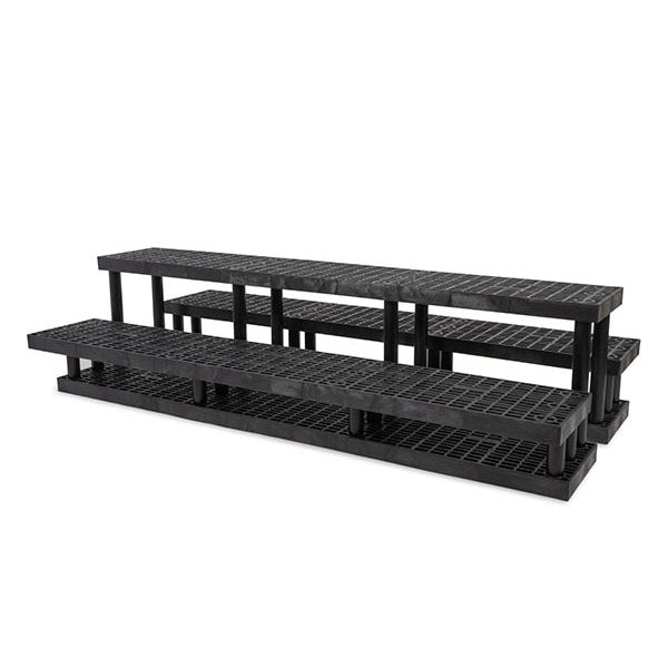 The Benchmaster™ Three Step Pyramid Display comes with extra legs for support and stands at just 24” tall, fitting perfectly in selling environments where sight lines are key. This configuration comes in two widths of 51" and 59", and four lengths; 36”, 66”, and 96” long. Each shelf is 16" wide with a 4" overlap. Take advantage of vertical merchandising space, keep sightlines open and showcase the full color and variety of products to pull shoppers in.