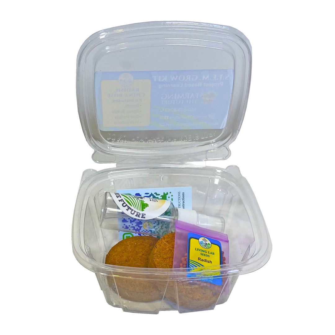 Farming The Futures's K-12 STEM Microgreens Kit is perfect as a take home or in class project. These kits are typically bundled with one of the Tabletop Living Labs for students to be able to apply their in-class learning at home. However, these are great stand-alone projects for enrichment, camps, homeschool, or after school. Engaging for any K-12 student or adult, one kit provides everything needed to grow hydroponic microgreens. Question, hypothesize, test, analyze, and then eat! All of Farming The Futures growing experiments are edible.