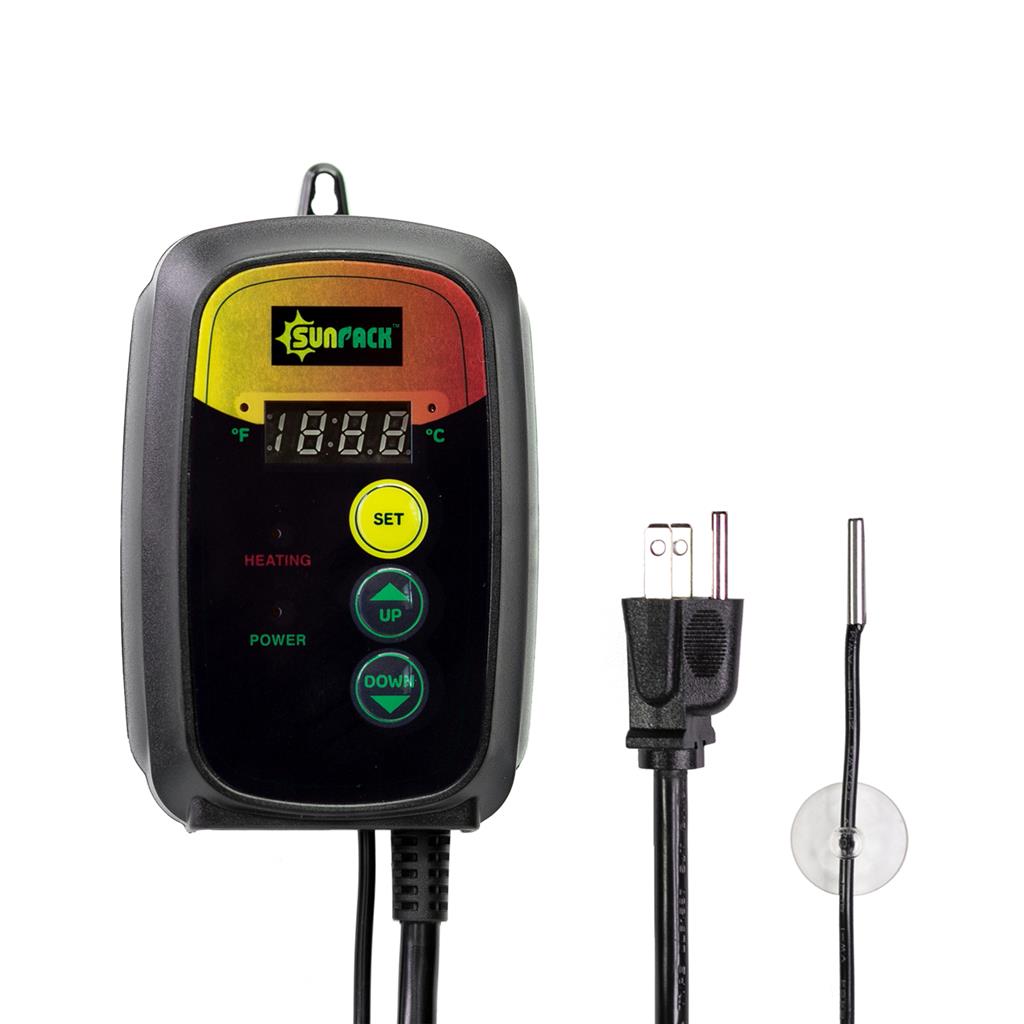 This Thermostat for Seedling Mat allows growers to select and maintain optimal temperatures when germinating seeds or rooting cuttings for fastest growth. In addition to its horticultural uses, it is also a great tool for homebrewing (maintenance of optimal fermentation temperature) and environmental control in reptile terrariums. This UL-listed digital thermostat provides constant, uniform temperature control for germination, propagation and fermentation environments between 68°F-108°F (20°C-42°C). Will control up to 1000 watts of propagating mats. Works with the Seedling Propagation Mat (SUNPAD Lite Heat Mat) or most other 120V mats.