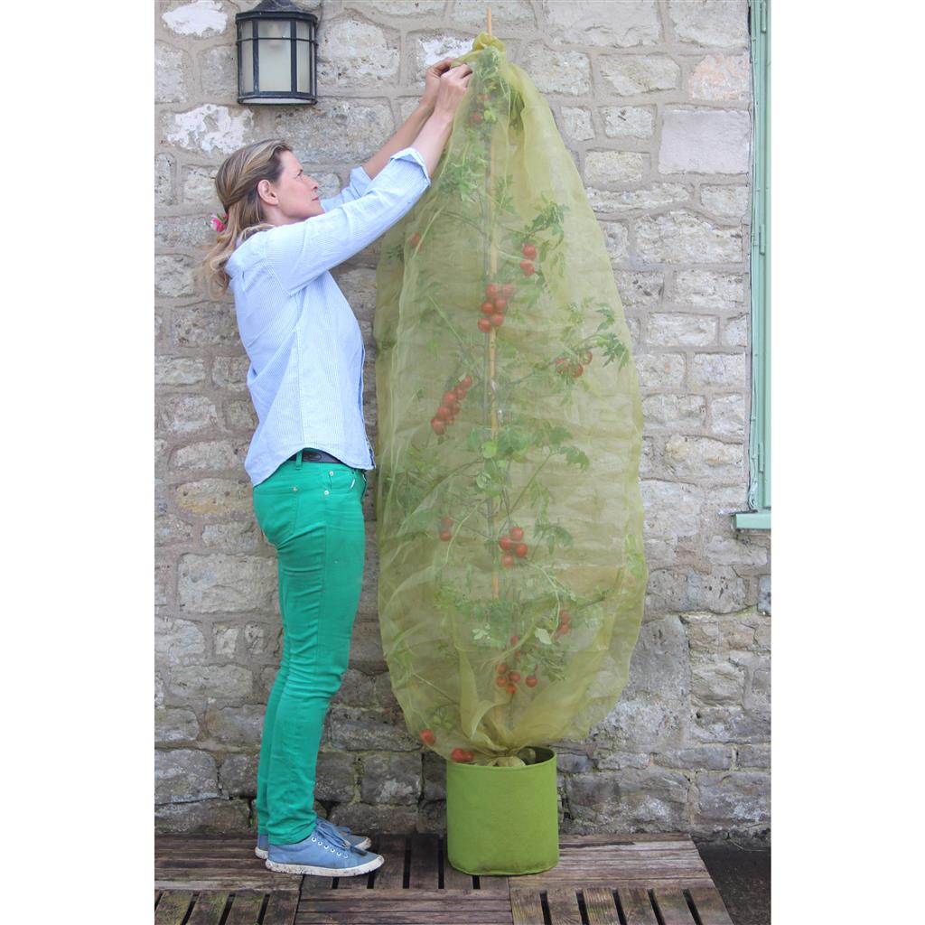 Organic pest and weather protection sleeve with ultra-fine (0.6mm) Micromesh netting. Tubes can be supported with canes (not included) and secured at top with wire ties (included). Remove sleeves when flowering to allow pollination. Protects plants from insects such as aphids, flea beetles as well as birds and other animals.