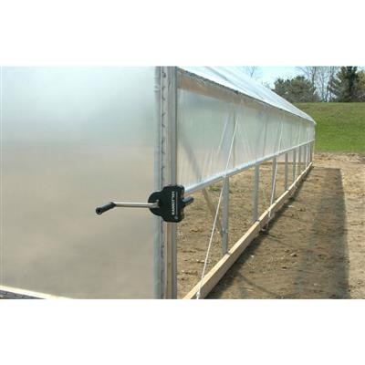 Complete package price includes: Everything in the frame only price and: upper and baseboard lumber U-clamps, end-wall lumber mount fittings and hardware, Wiggle Wire poly fastening system, single-layer clear poly roof and ends. (2) full-length manual roll-up ventilation systems. Lumber not included.