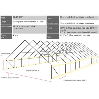 • Frame Spacing: 4' or 6'
