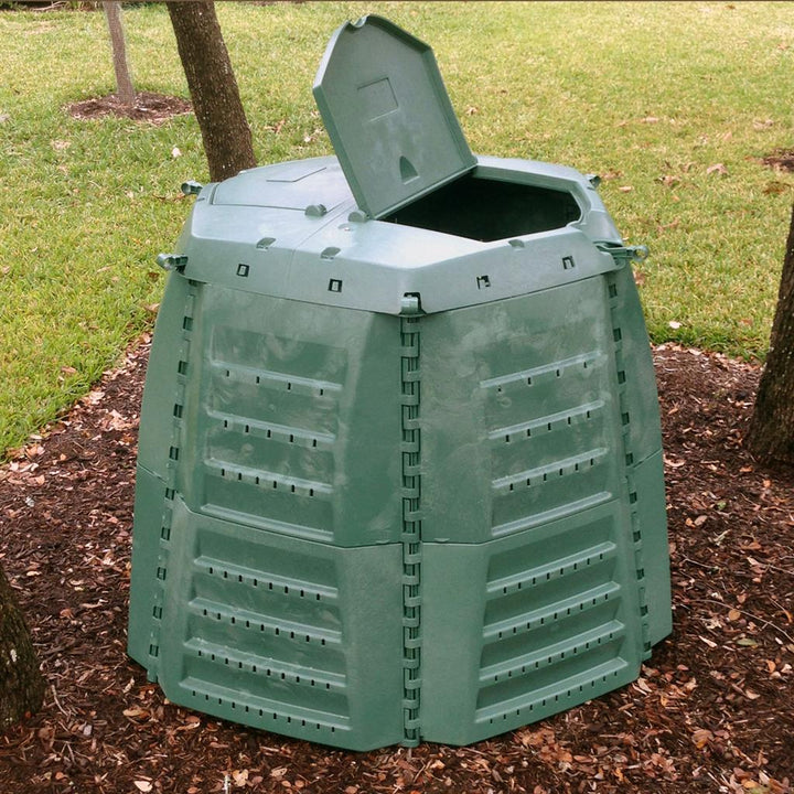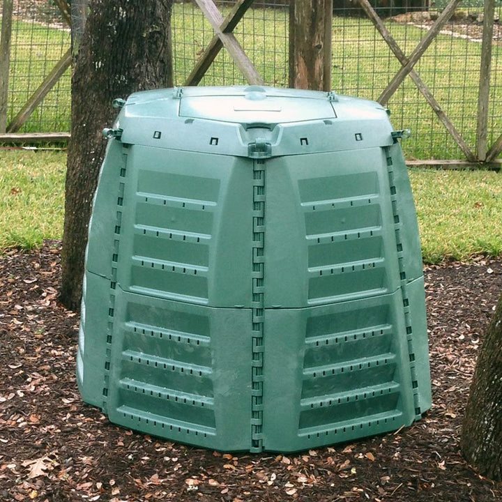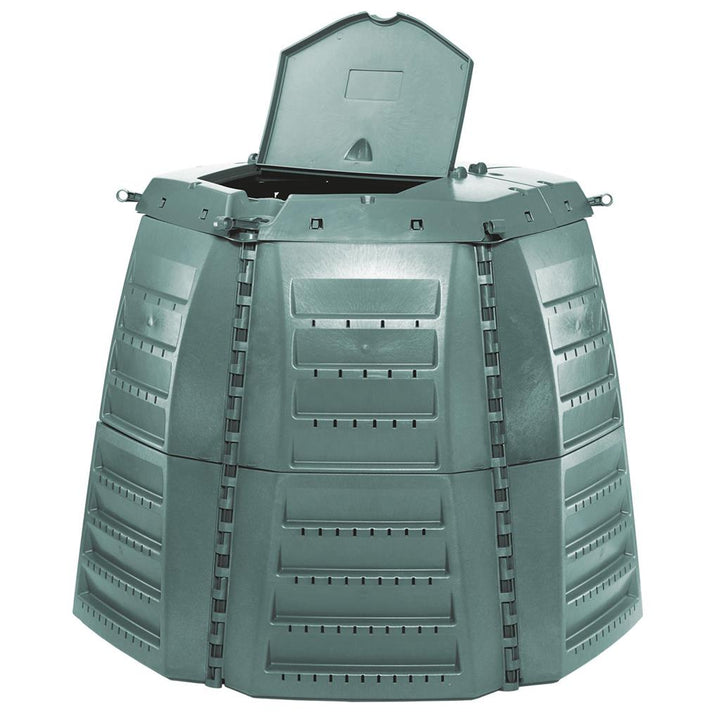 The Thermo Star 1000 Composter is perfect for saving household waste charge and producing nutrient-rich compost to use in your garden. Composted materials save on using fertilizers, plus compost is nutritious and considered the best humus soil for your garden. The 1000 liter (267 gallon) composter is made of the quality material Thermolen. Thermolen is injected with air creating small air pockets and these specially created air pockets help to insulate the compost inside. Heat from solar radiation and microorganisms remains inside the composter and accelerates the composting cycle.