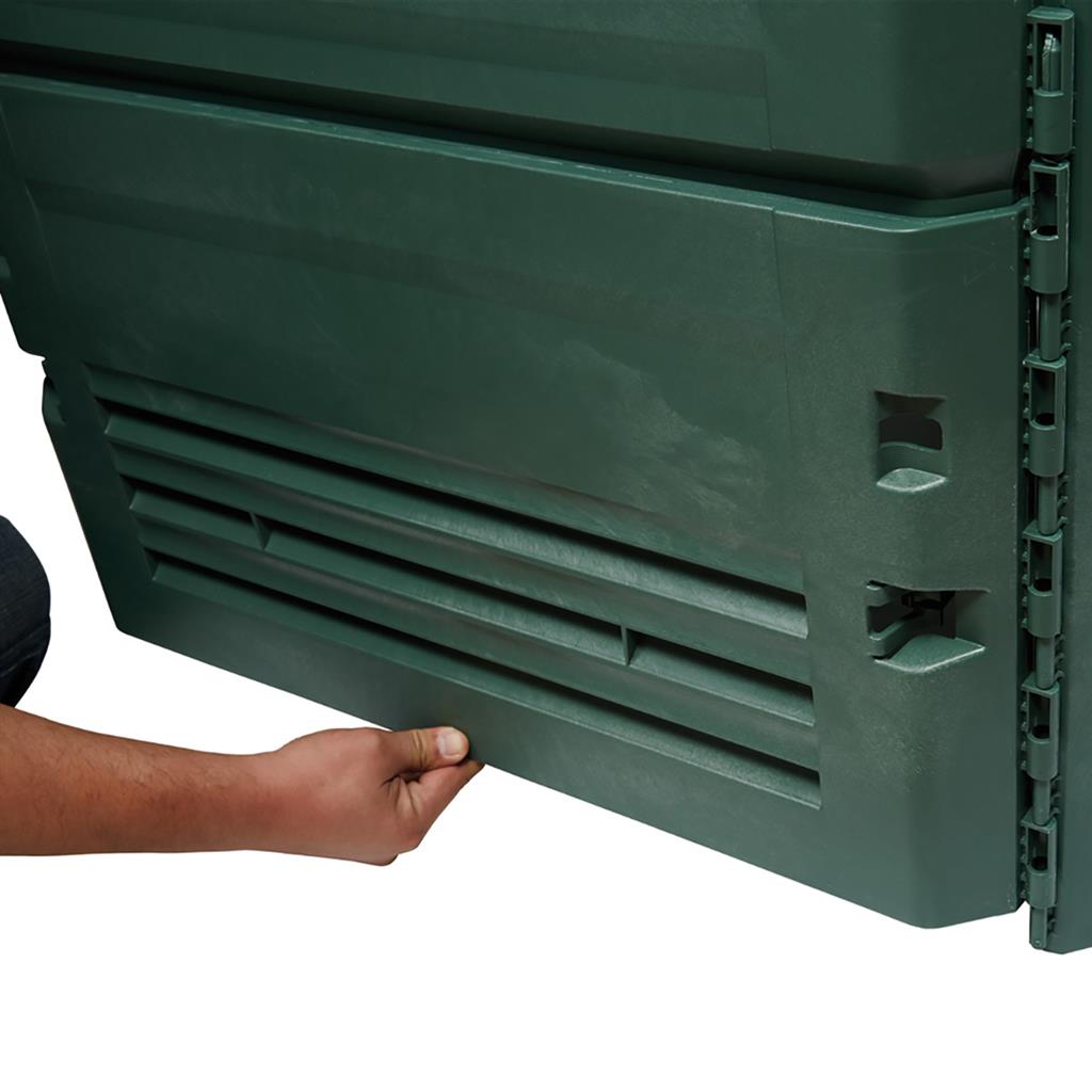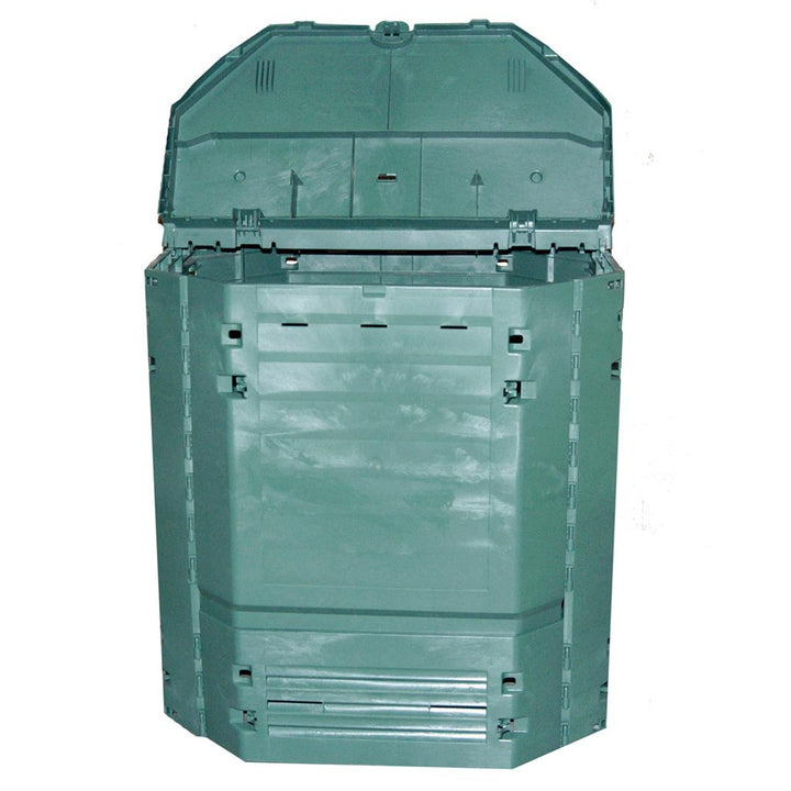 The Thermo King 900 Composter can be easily assembled without the need of tools using the Easy-Lock assembly system. The two large, hinged access panels make it easy to use and features an optimized ventilation system for maintaining the ideal temperature. This design makes it the ideal composter for people who live in cooler climates.