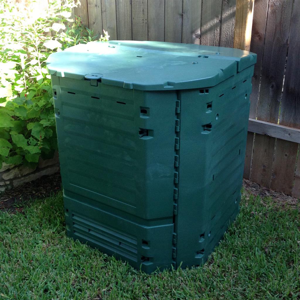 This modern-looking composter is made of environmentally friendly recycled plastic that is UV and weather-resistant. The walls of the 900 liter (240 gallon) Thermo King compost bin are made of Thermolen which offers outstanding insulation. Heat retention is important to the composting process, and this UV stable material provides the ultimate in thermal insulating.