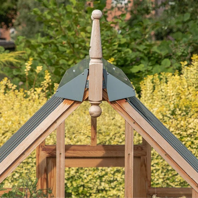The Rosemoor greenhouse kits are crafted from Western Red Cedar, a durable and stable wood renowned for its resilience in harsh climates. When red cedar absorbs moisture, its naturally occurring preservatives are triggered and the moisture is quickly released into the air, helping to give red cedar its longevity. All red cedar used in these greenhouses is sourced from certified or sustainable forests.