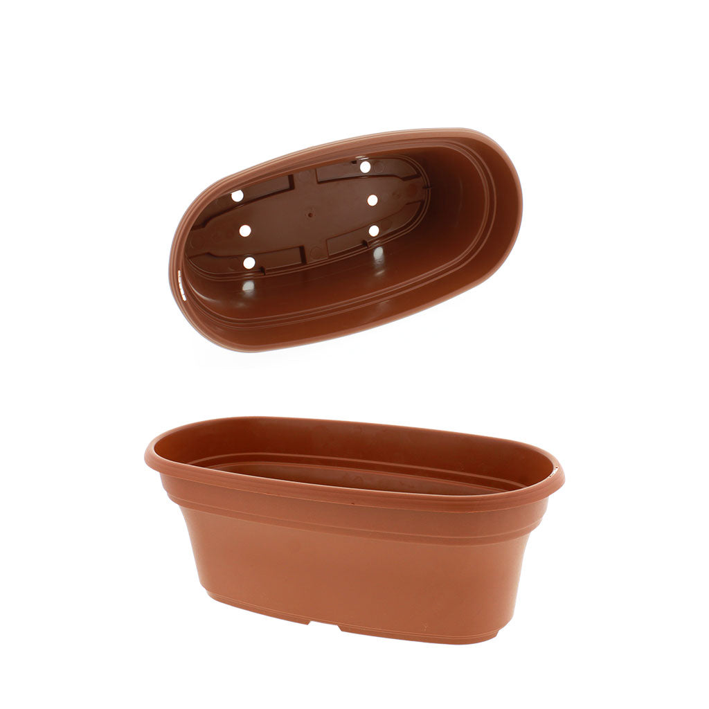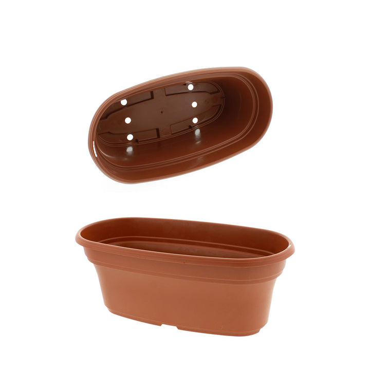 These distinctive, Oval shaped polypropylene plastic planters have a textured clay colored finish and are a popular choice for colorful flowering arrangements, herbs, annuals and tropical plants.