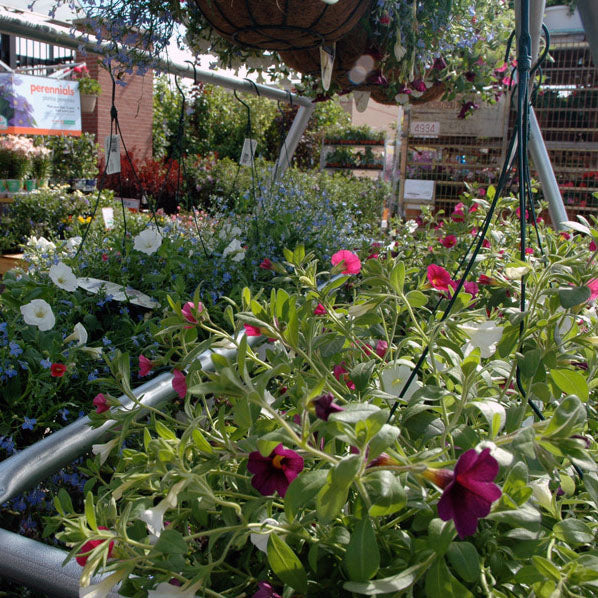 The narrow design of this display is designed to roll through a 36" door while displaying hanging baskets attractively and conveniently for your customers. A-frame design allows full light for healthy plants making it a versatile year-round fixture. Narrow Basket Hanger comes with casters.