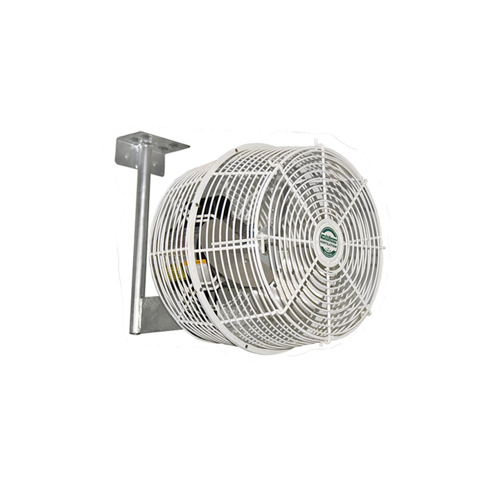 The Barnstormer is the perfect air flow solution for any agricultural application. The special patented design of this fan provides constant temperature, controls flies, controls ammonia gases and eliminates condensation while reducing heat stress. The Barnstormer is the only fan on the market with an Exclusive Open Front Feature. This unique design helps reduce cleaning and maintenance time by 75%. Hay, straw, chicken feathers or dust build up removed in just a minute. Includes white epoxy coating and adjustable tilt bracket.