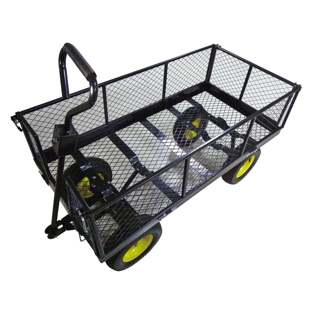 The Backyard Expressions Garden Cart has been designed to make your life as a gardener much easier! The cart is easy to maneuver, has a large bed area and can carry up to 600 pounds. A padded comfort grip handle is easy on your hands while the large pneumatic tires roll smoothly over grass, dirt, gravel and any other terrain. The sides can be folded down or removed to accommodate your tools and equipment.