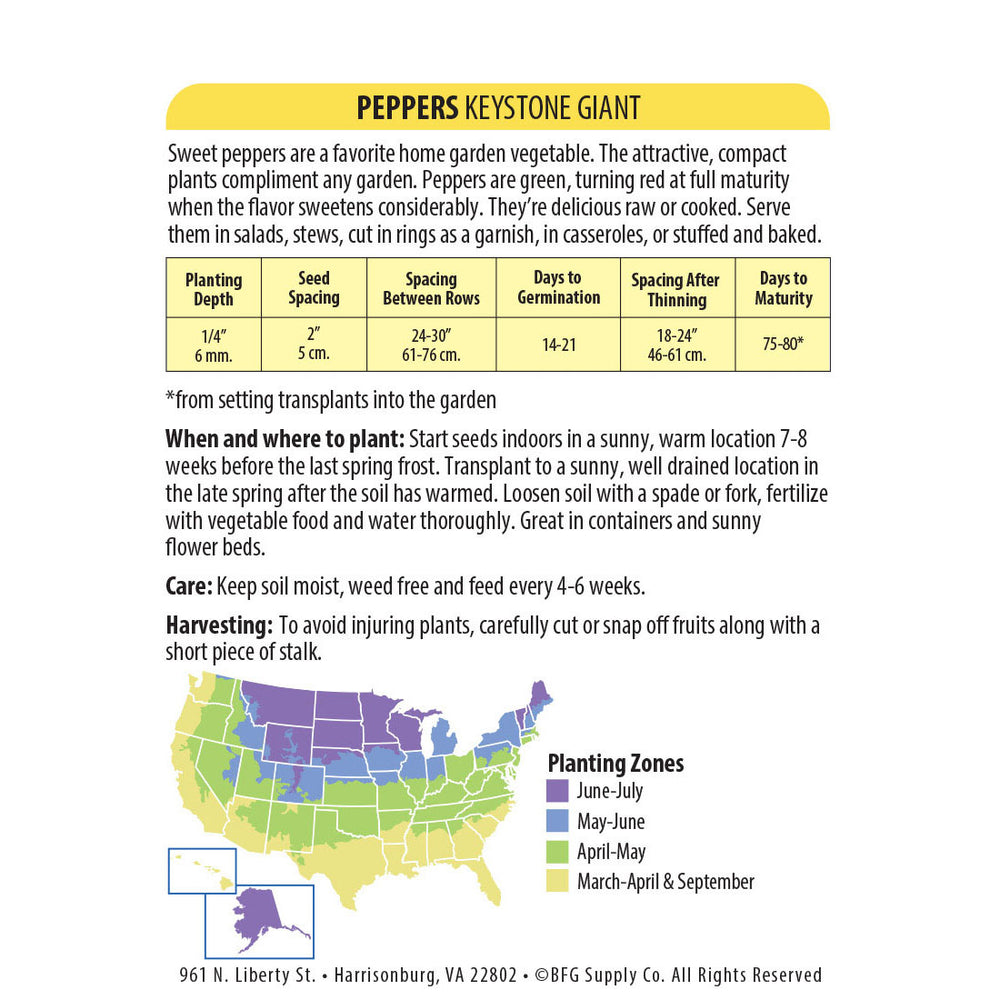Wetsel Seed™ Keystone Resistant Giant #3 Pepper Seed