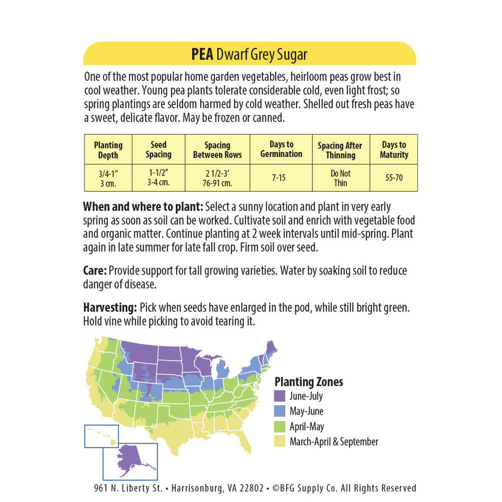 Wetsel Seed™ Heirloom Sugar Pea Dwarf Grey Seed