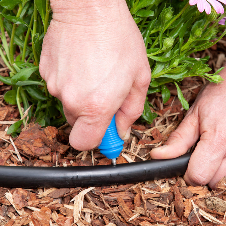 Punch holes in 1/2" poly tubing when connecting 1/4" micro tubing or drippers to the main line.