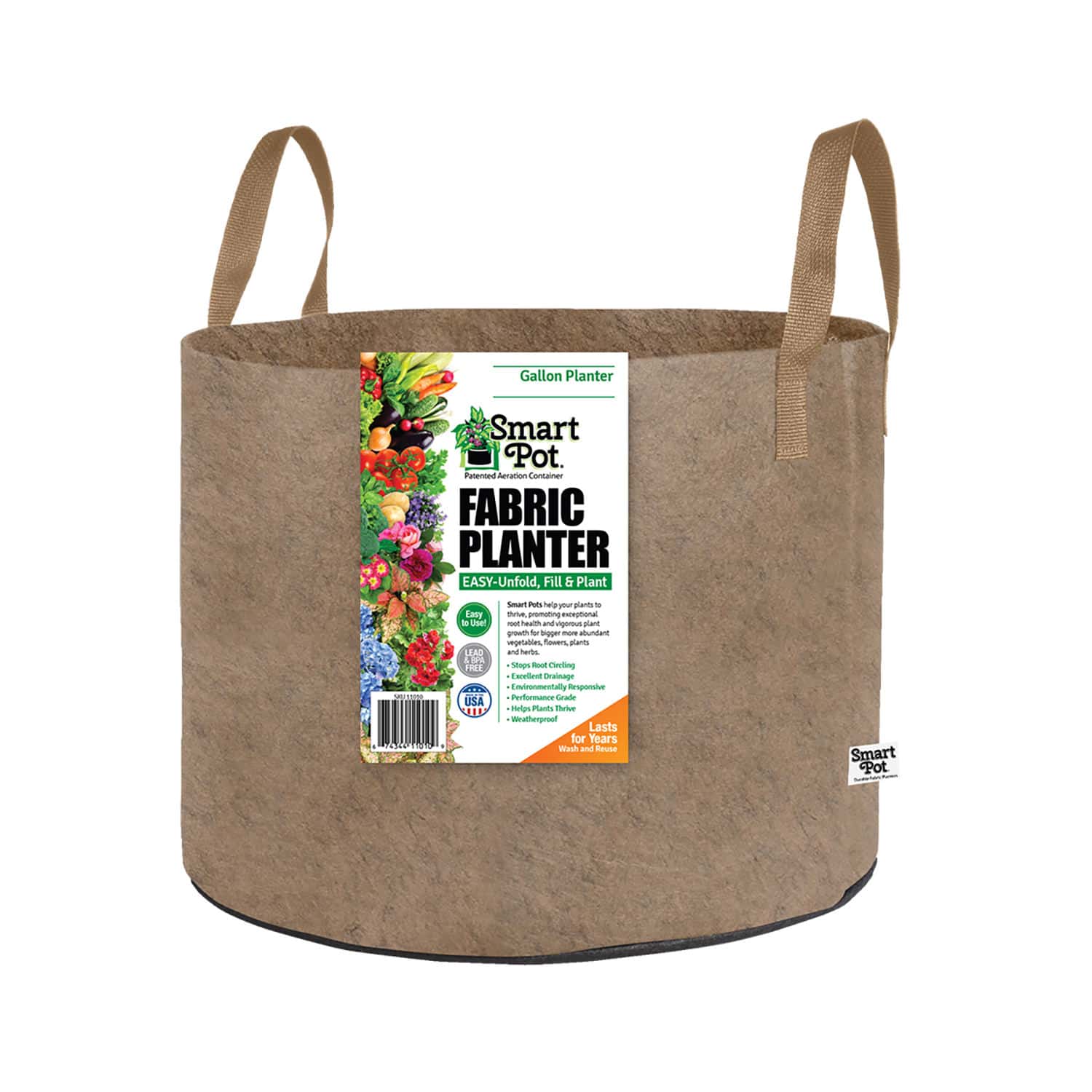 Smart Pot® Natural Color Fabric Planters help your plants thrive, promoting exceptional root health and vigorous plant growth for bigger, more abundant vegetables, flowers, plants, and herbs. Made with natural color, long lasting, porous material that promotes air root pruning, excellent drainage and allows excess heat to escape, producing superior plants. Weather-resistant material allows the planter to be reused year after year. Made in the USA. BPA and lead free.