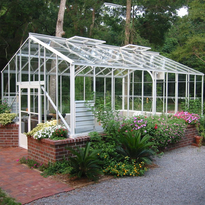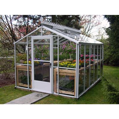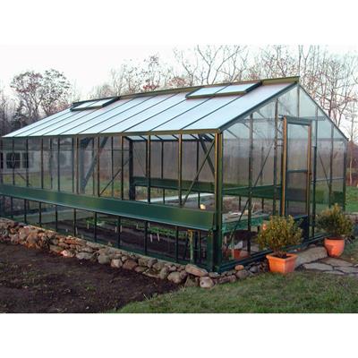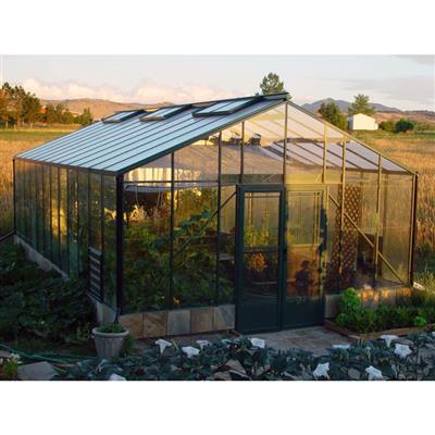 Built with a corrosion-resistant aluminum frame, this greenhouse features a 24-degree roof slope and 5.5-foot sidewalls. The roof is fitted with clear 3mm tempered lapped glass. For an upgrade, one-piece 6mm glass is available, or you can opt for 6mm polycarbonate panels at no additional cost. Models 16 feet and longer include structural trusses for enhanced support.