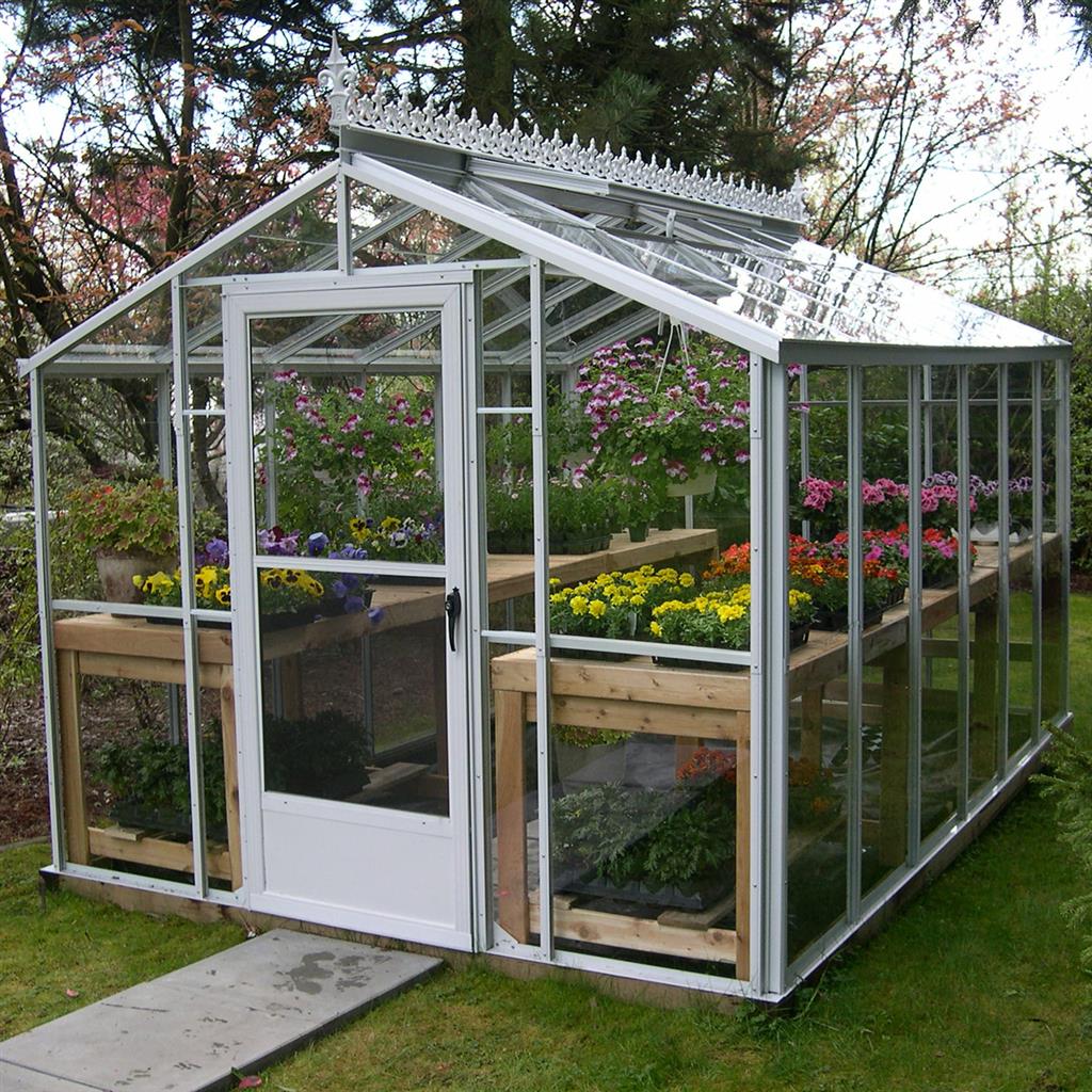 This timeless Traditional Glass Greenhouse offers maximum natural light, making it perfect for year-round growing. Its straightforward, efficient design provides ample space for plant benches, hanging containers, and a variety of custom setups. Sizes vary from a small backyard garden model up to a structure that would work well as a small nursery.