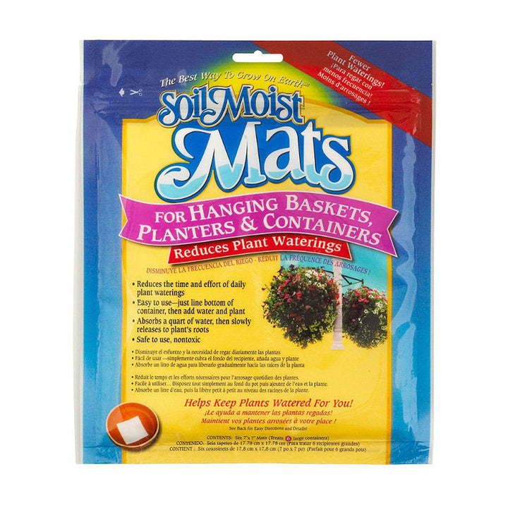 With the Soil Moist Mat, you can reduce the frequency of plant watering by up to 50%. Made up of non-toxic crystals woven into a degradable cloth and operating like a sponge, the Soil Moist Mat lines the bottom of your plant container or basket and stores the extra moisture that comes in when you water the plant. When the soil begins to dry, the mat slowly releases that water back into the soil, keeping your plant's roots well-nourished and saving you time and labor.