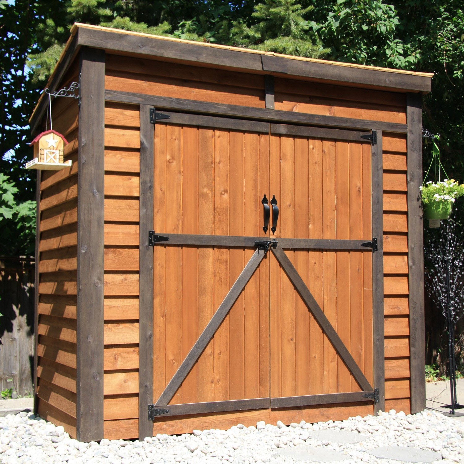 The 8 ft. x 4 ft. GardenSaver with Double Door Lean-To Shed is a great solution for creating additional storage space that tucks right up against your house. Double doors allow for easy access to all your small lawn equipment, tools, gardening supplies, or bicycles. Made in Canada with Sustainably Sourced American and Canadian Western Red Cedar.