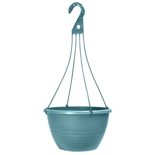 Whether you opt for the 10-inch or 13-inch pot, these hanging baskets provide versatility to accommodate various plant preferences and sizes. The color coordinating 18 inch hanger with large hooks easily snaps onto the rim of the basket. Baskets feature a center drainage hole.