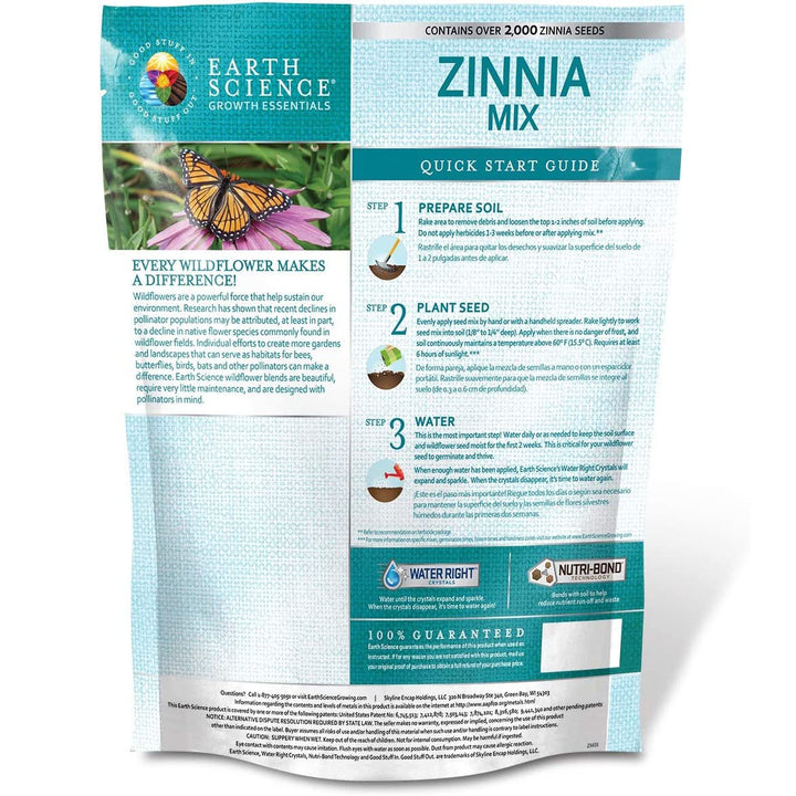 • Safe For People & Pets - Earth Science Zinnia Mix contains only rich organics and natural nutrients. Earth Science Zinnia Mix is Non-GMO and does not contain harmful chemicals or pesticides. This good-for-the-earth seed mix is safe to use around people and pets.