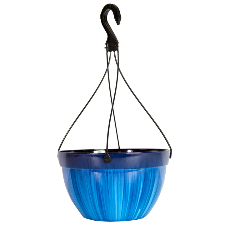 Gardener Select® Drip Hanging Baskets are available in three vibrant colors: green, blue, and red. These 12-inch diameter plastic planters offer the aesthetic of ceramic pots but with added lightweight durability. Perfect for both indoor and outdoor use, they add a splash of color to any space. Hangers are included.