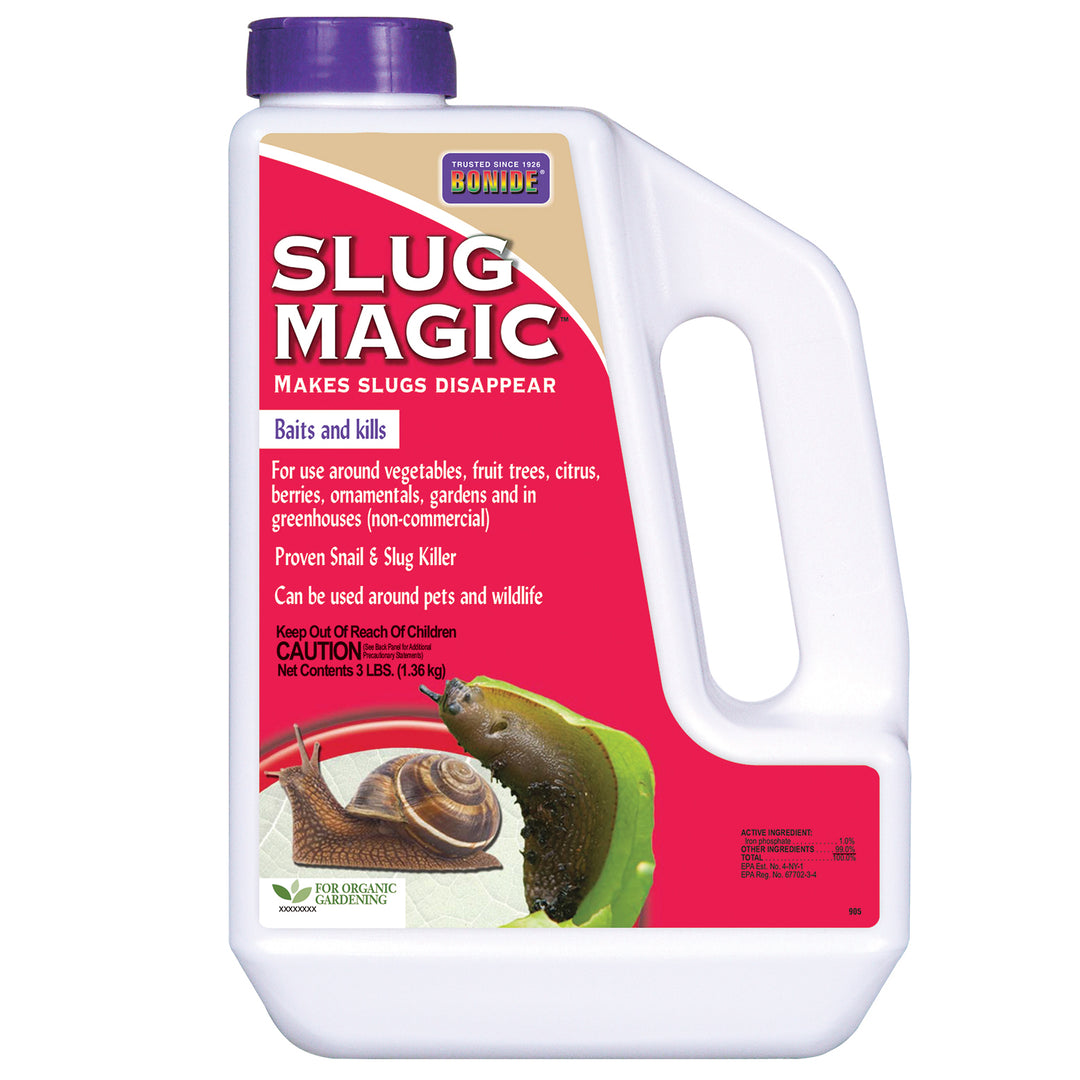 Slug Magic is an all-weather formula in pellet form that helps to rid your garden of slugs and snails. It contains a unique combination of iron phosphate with slug and snail bait additives that will bait them out and kill them once it has been applied to your garden.