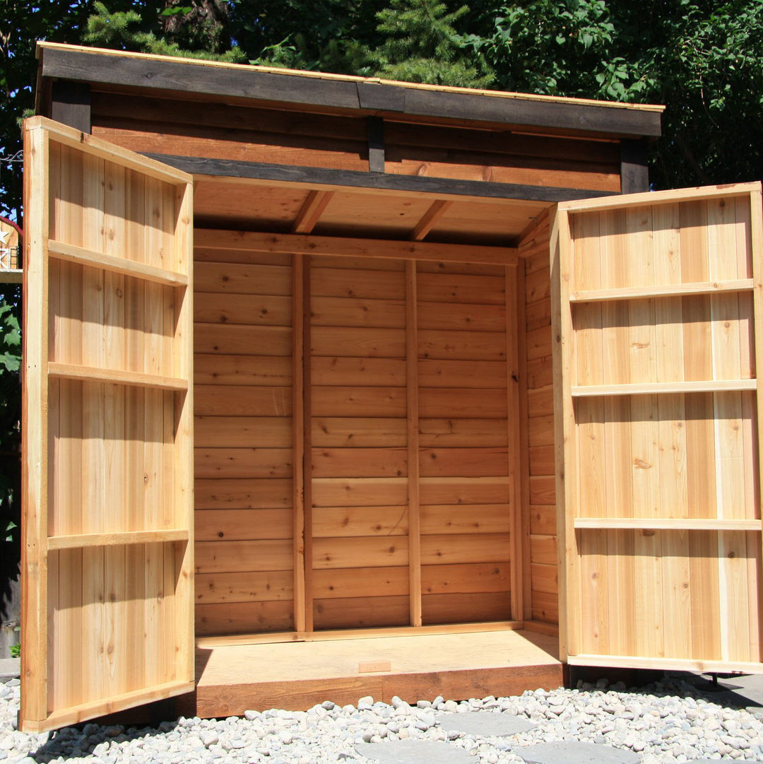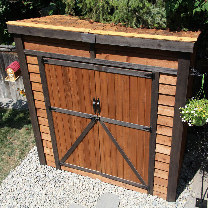 The 8 ft. x 4 ft. GardenSaver with Double Door Lean-To Shed is a great solution for creating additional storage space that tucks right up against your house. Double doors allow for easy access to all your small lawn equipment, tools, gardening supplies, or bicycles. Made in Canada with Sustainably Sourced American and Canadian Western Red Cedar.