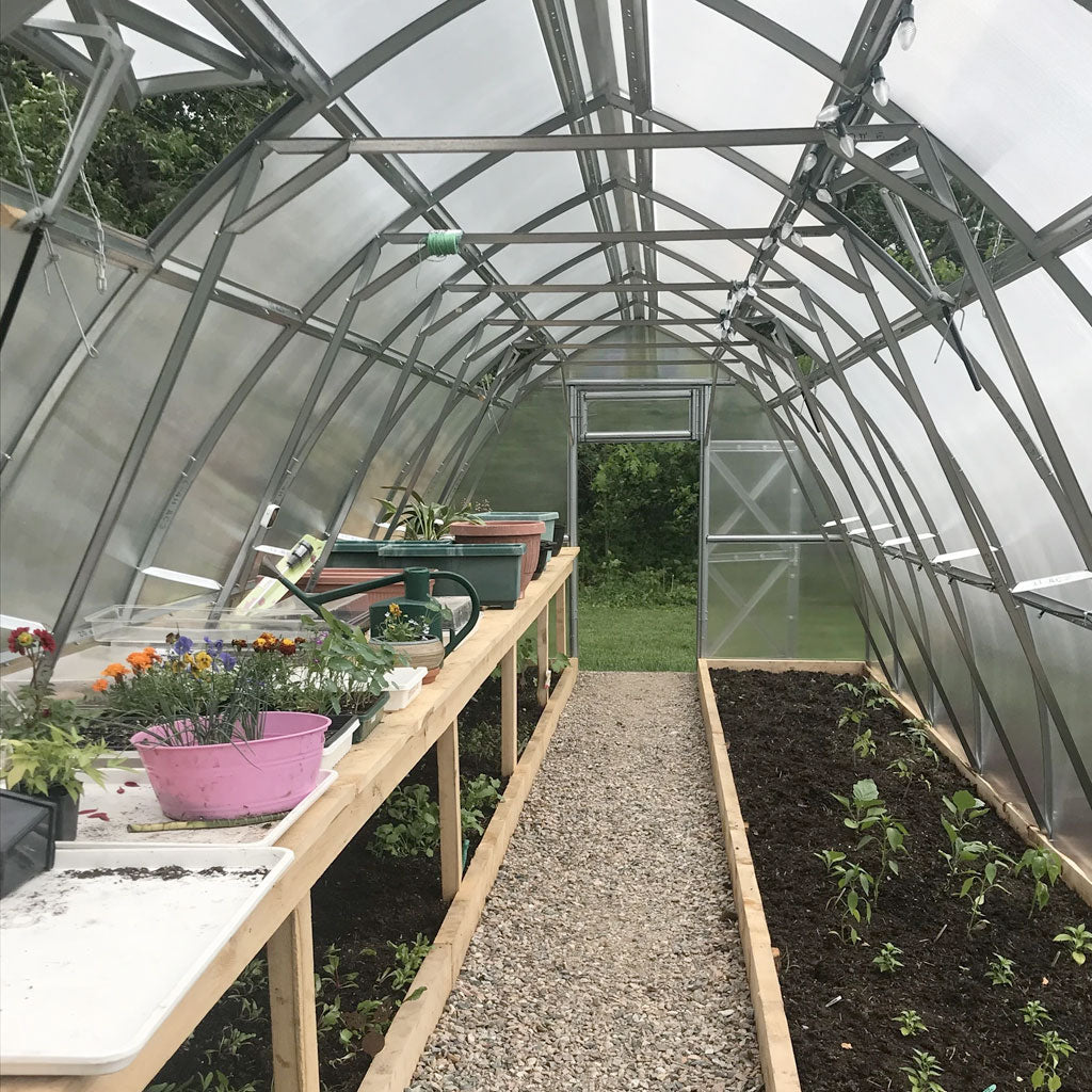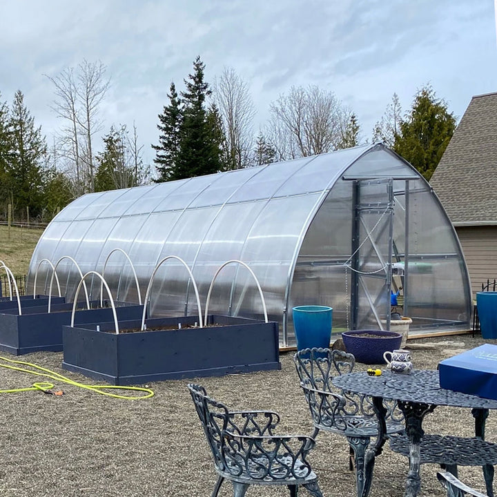 Built to withstand harsh winters, the Sungrow 26 features a spacious eight-foot roof height for a comfortable working environment. Its galvanized steel frame resists rust and supports heavy snow loads, ensuring long-lasting durability. The 6mm twin-wall polycarbonate panels provide superior temperature insulation and are up to 250 times more impact-resistant than glass. The unique bell-shaped structure efficiently sheds wind, rain, and up to six feet of snow.