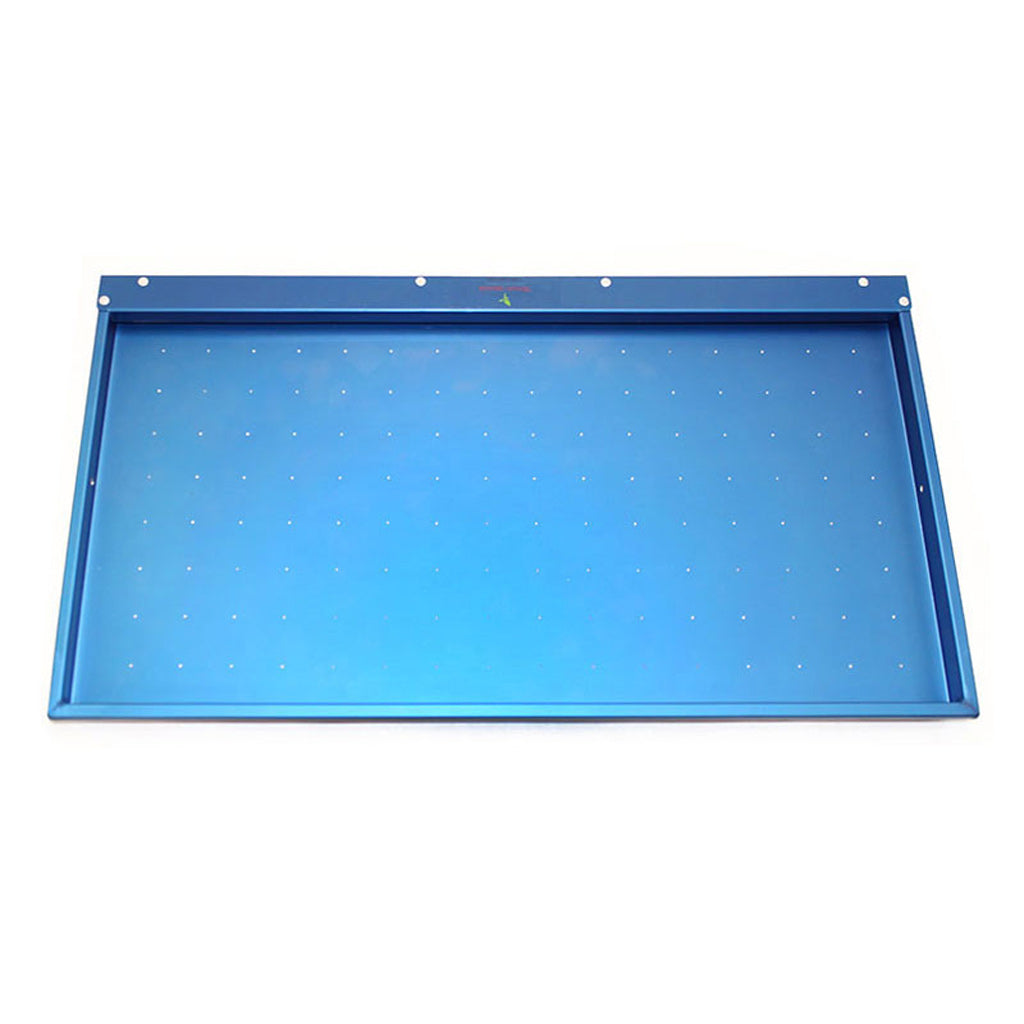 The Speedy Seeder Plate is made of anodized aluminum and necessary to the function of the Speedy Seeder. The holes in the Plate sort the seeds to ensure that whenever the Speedy Seeder is used, each cell of every tray is properly seeded. The Plate's built-in reservoir stores enough seed to fill multiple trays, one right after the other, which allows for remarkably quick seeding. The Speedy Seeder Plate is designed to fit standard 1020 trays.