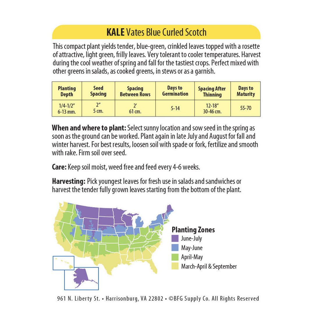 Seed Variety: Kale, Vates Blue Curled Scotch
