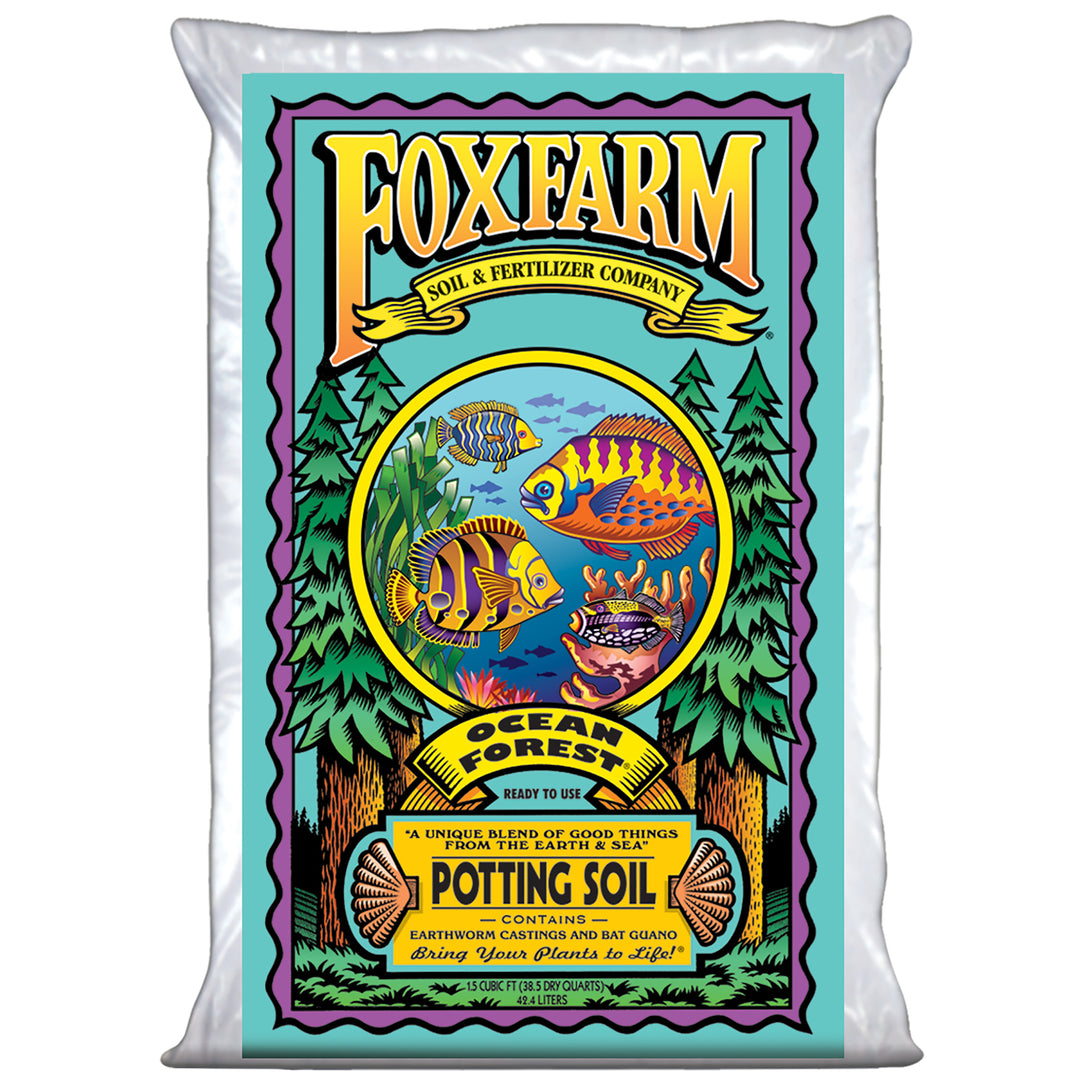 This FoxFarm potting mix is a powerhouse blend of aged forest products, sphagnum peat moss, earthworm castings, bat guano, fish emulsion and crab meal. Aged forest products, sandy loam and sphagnum peat moss give Ocean Forest its light, aerated texture. With FoxFarm soil, you're giving container plants everything they need from the earth and sea.