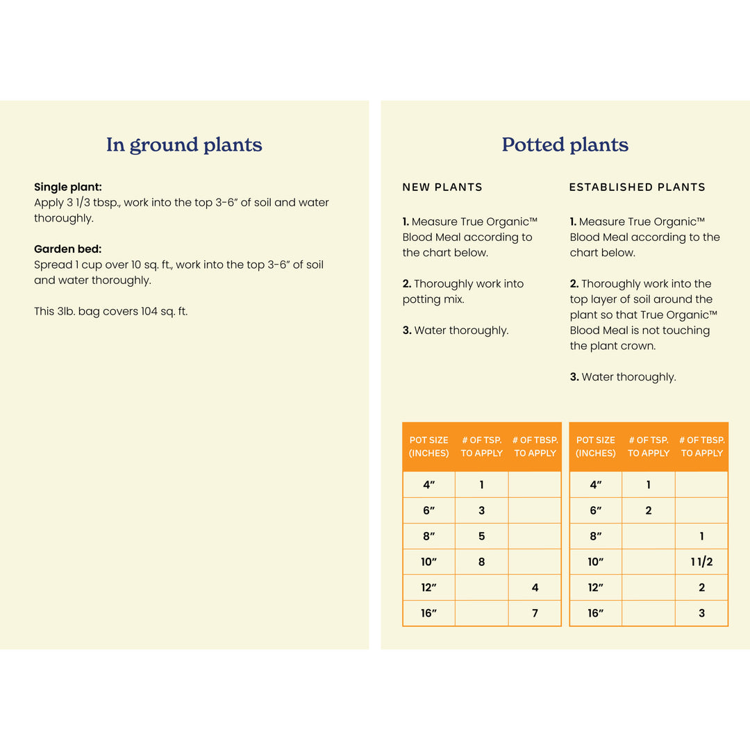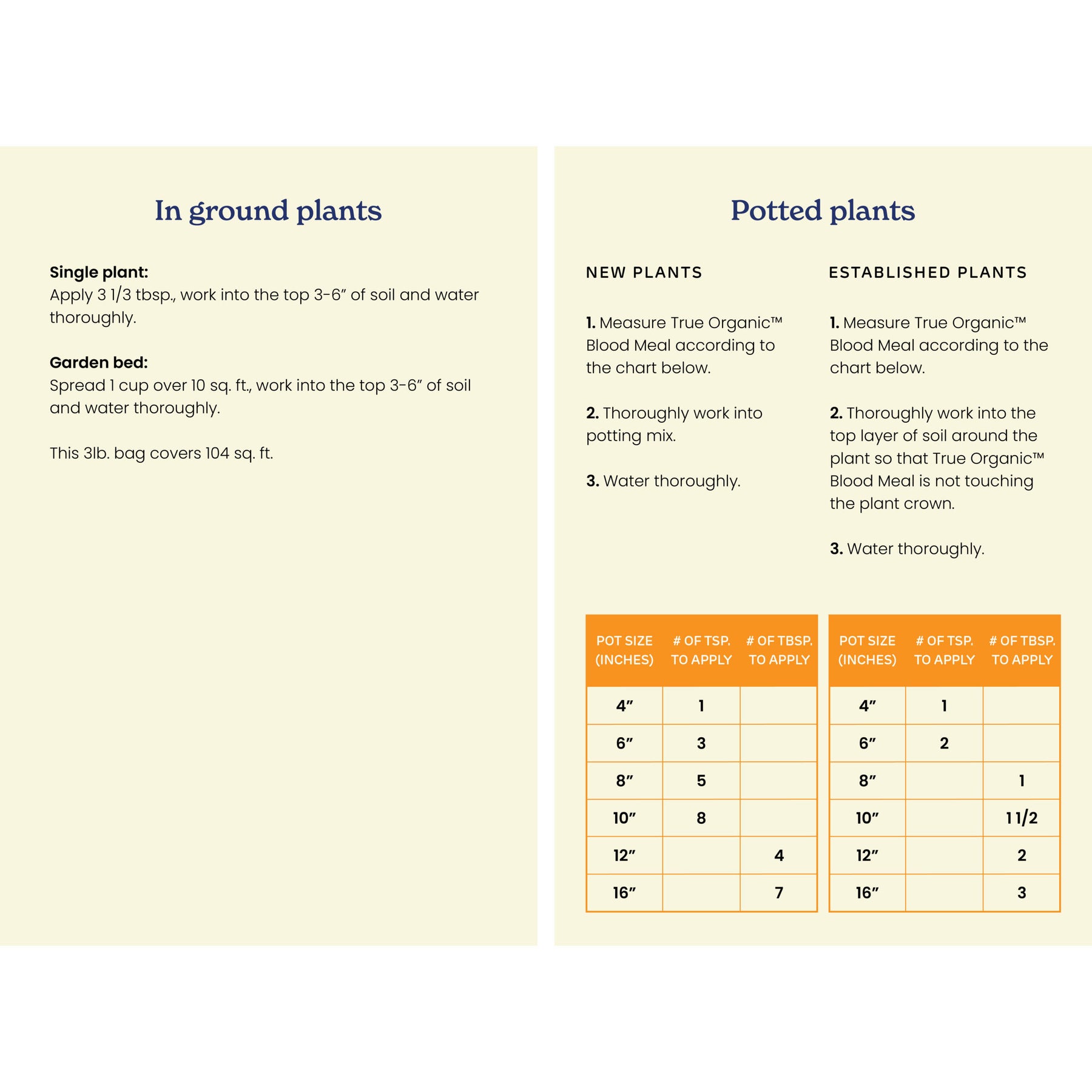 True Organic Blood Meal supports luscious foliage, gives plants a quick boost for healthy growth and builds the long-term wellness of your soil.