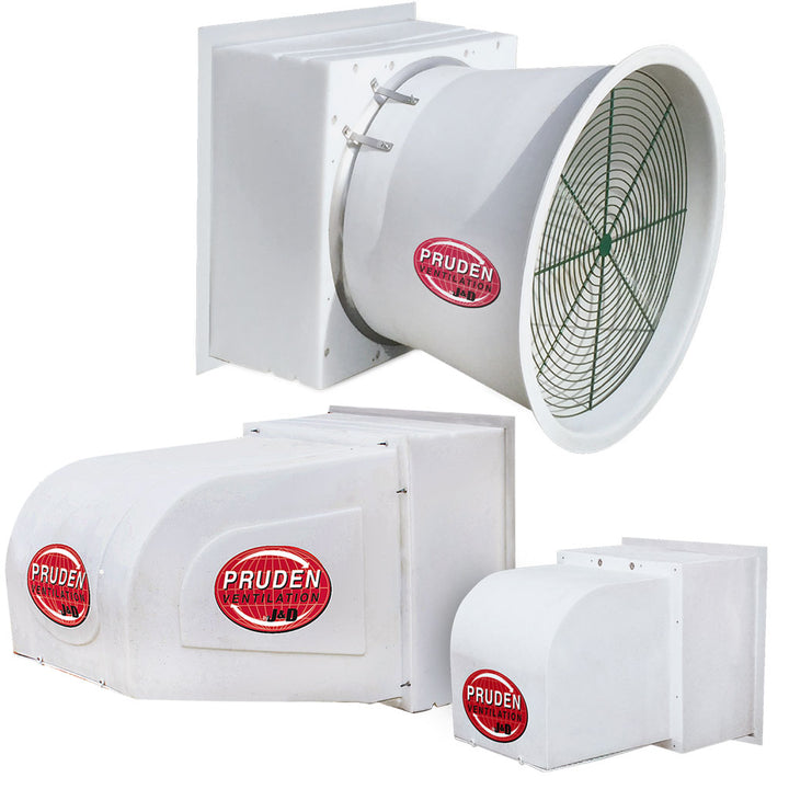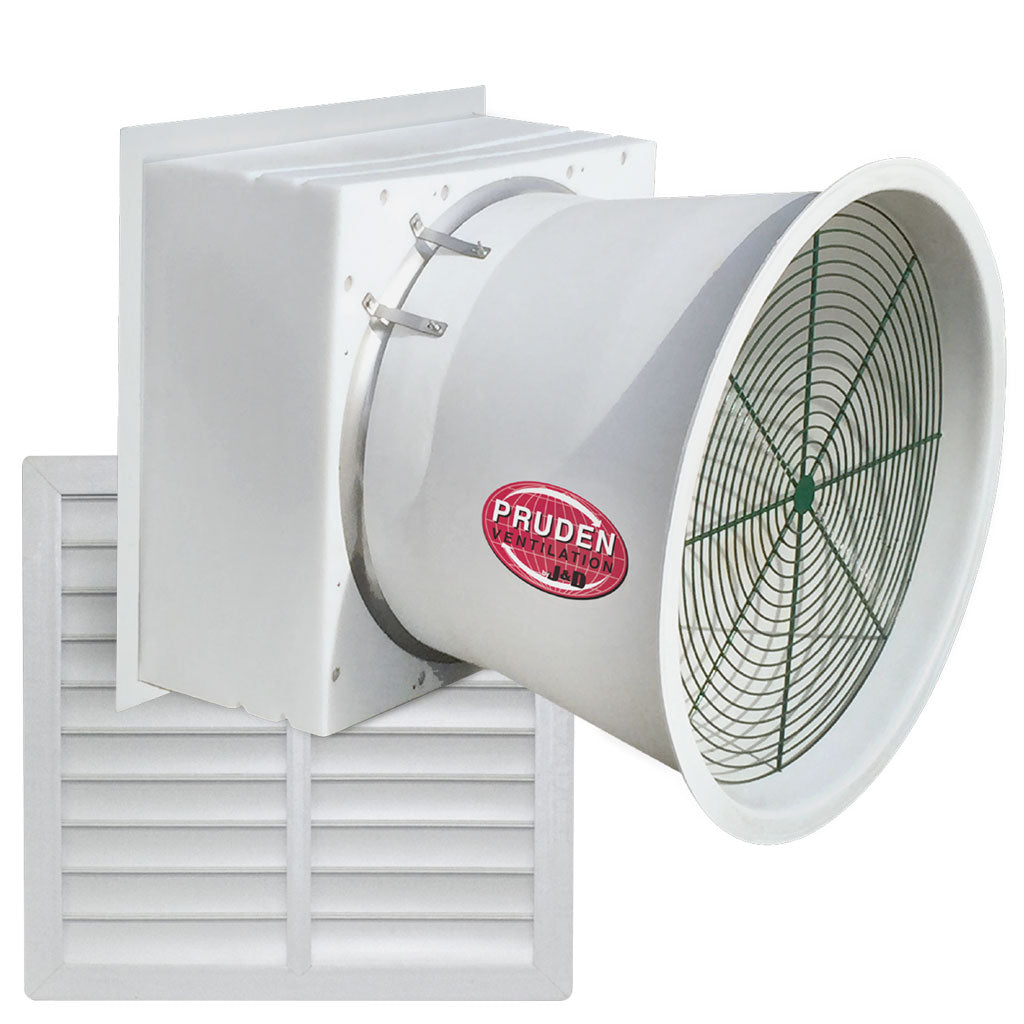 The Pruden Polystainless Exhaust Fan from J&D Manufacturing is a proven performer that’s built to last. Polystainless fans are manufactured with a poly and stainless steel construction for the harshest agricultural environments. The extended poly weather hood protects the fan from wind and weather for maximum efficiency all year long.