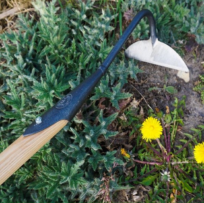 The DeWit Half Moon Hoe is a timeless tool crafted for precision in gardening. This traditional hoe is expertly designed for cutting and cultivating just below the surface, ensuring a seamless weeding experience. Its exceptionally sharp forged edges effortlessly slice through soil, making even stubborn weeds a breeze to remove.