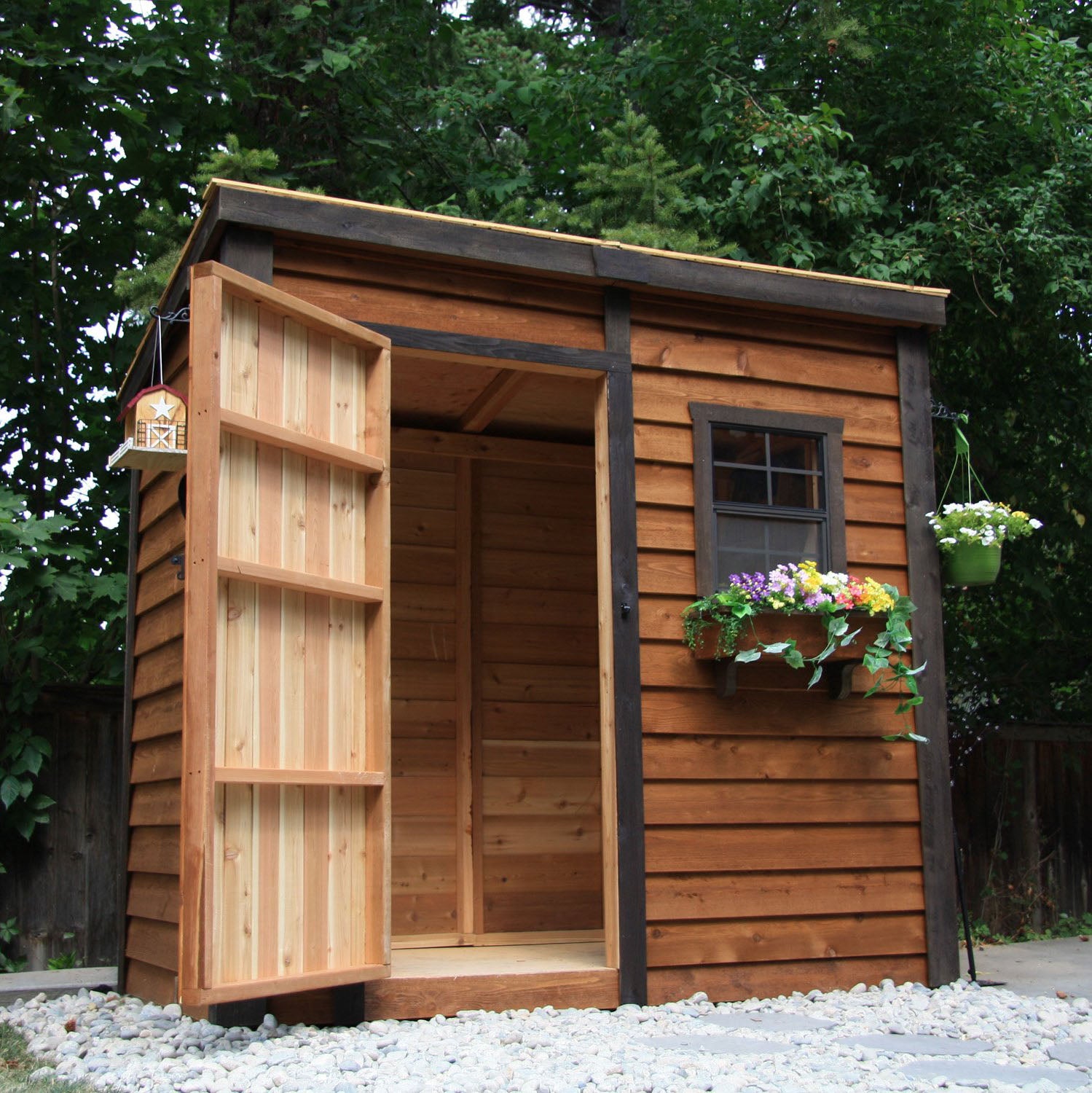 The Garden Saver utilizes a functional, screened aluminum window that provides ventilation, and comes with a flower box for added charm. The panelized walls feature sustainably sourced Western Red Cedar and assemble with ease! Simply screw or nail components together on the supplied floor with hardware included.