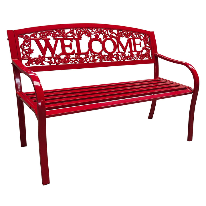 The backrest features an elegant leaf design along with the word "Welcome," adding a warm, inviting element to any patio, garden, or backyard setting. This intricate detail not only serves as a beautiful decorative accent but also ensures lasting quality.
