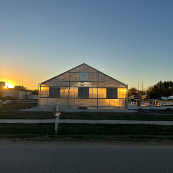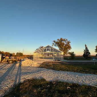 The new greenhouse is a 30 ft wide x 60 ft long Gable 7500 Series model with an 8 ft under-gutter height. Its features include a galvanized, roll-formed steel engineered frame designed to meet both wind and snow load requirements, 8mm clear twinwall polycarbonate covering, a lower mechanical ventilation system, gable venting, a manual 50% shade system, and environmental controls.