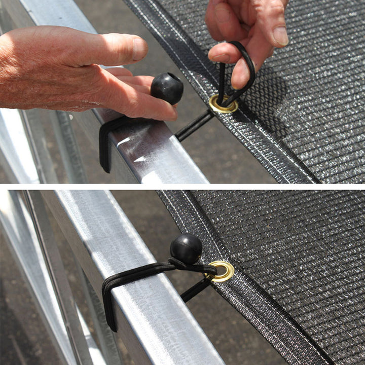 Use these handy bungees to easily attach any fabric with grommeted edges. Perfect for shade cloth or tarps.