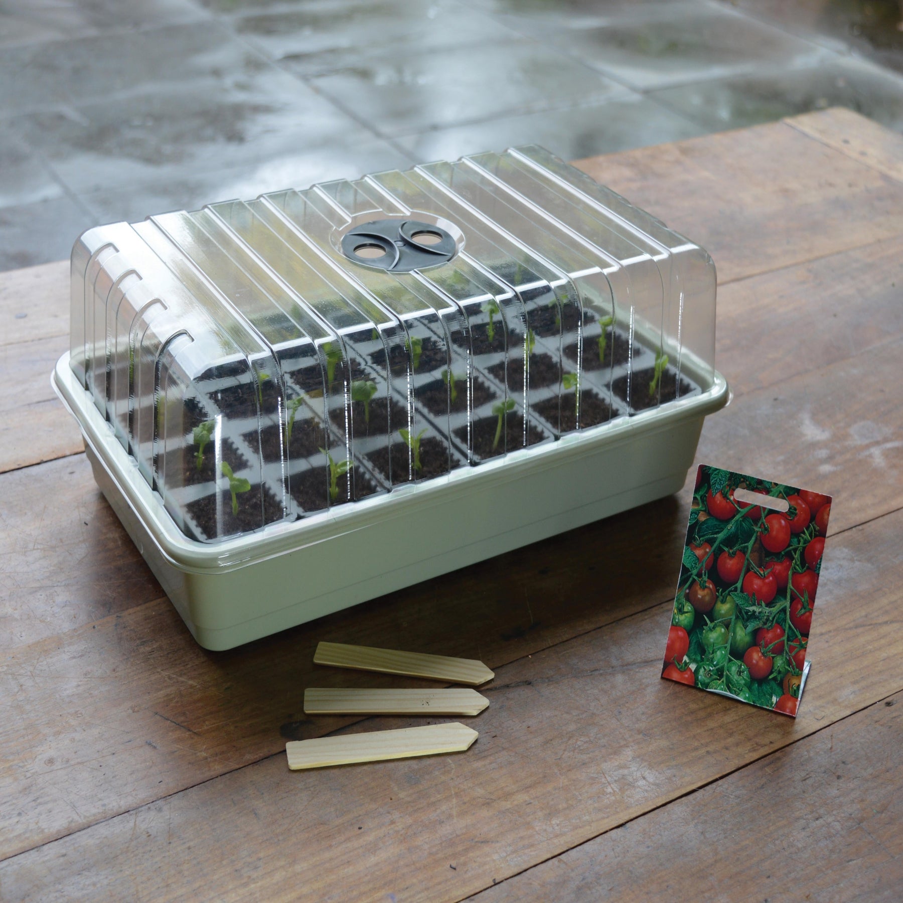Made from long-lasting recycled plastic, this kit ensures years of use. Cells can be easily cleaned & sterilized in a dishwasher after use. 10 Year guarantee. Compact at 15 in. L x 9 in. W x 5.5 in. H assembled, it's ideal for nurturing thriving plants from the start.
