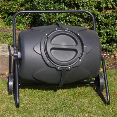 The 45 Gallon Compost Tumbler features a durable, plastic drum constructed from 90% recycled materials and a heavy-duty steel tube frame. The Compost Tumbler can easily turn your kitchen and garden waste into nutrient-rich compost and will also cut down on household garbage by recycling organic materials. Features built-in mixing fins that are designed to help break up clumps as well as two wheels on the back of the frame for easy mobility. The unique construction of the Compost Tumbler will enable air circulation to speed up composting.