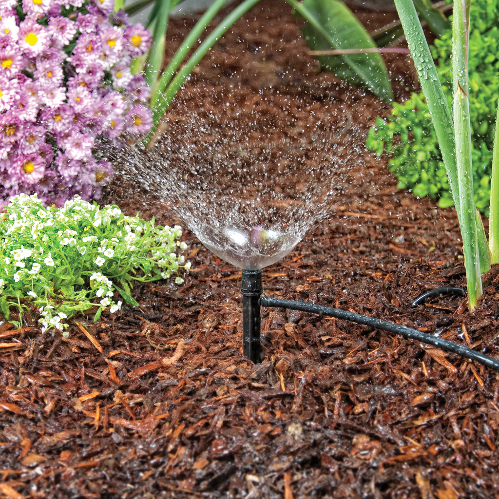The DIG Adjustable Sprayer on Spike provides an adjustable water flow to accommodate the various needs of plants throughout their life cycle. Uses low-volume flow rates to ensure maximum soil absorption. The sprayer has a maximum diameter spray coverage of 12 ft. depending on the flow rate.