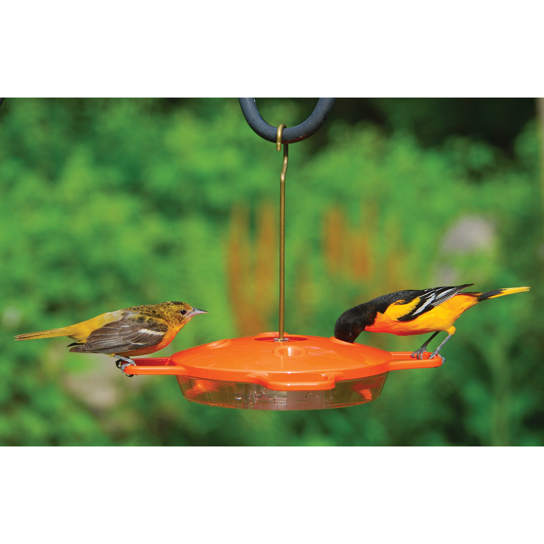 The feeder includes a built-in ant-moat, engraved nectar recipe, solid brass rod and is constructed of durable, easy-to-clean polycarbonate. Additionally, its bright orange color is sure to attract orioles to your garden.