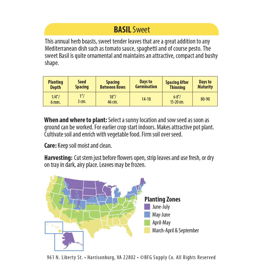 - Days to Maturity - 60-90 Days