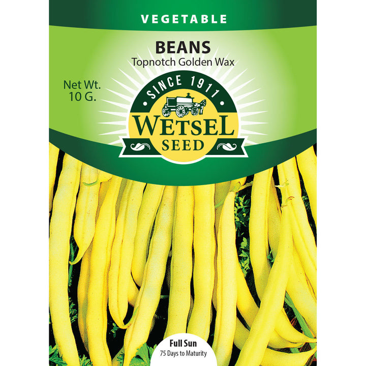 - Bean Type - Wax - Snap beans with no real difference in taste or texture as a green bean except they are yellow in color. They do not have a waxy texture.