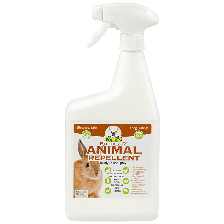 Bobbex-R Animal Repellent is a highly effective solution for deterring a range of pests including rabbits, groundhogs, squirrels, chipmunks, and voles. Its unique foliar spray formula ensures long-lasting protection without washing off, relying on a combination of taste and odor repulsion with an enhanced scent.