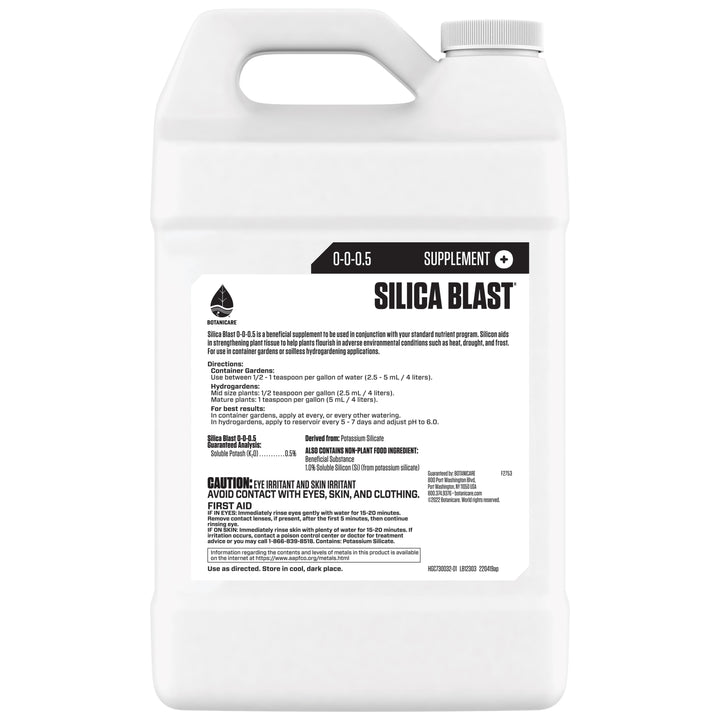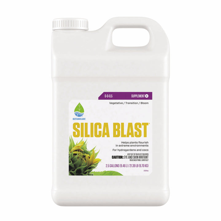Silica Blast™ reinforces and enhances plant tissues leading to bigger harvests, increased fruit quality and higher resistance to environmental stressors. Silicate is a beneficial nutrient supplement to be used in conjunction with a standard nutrient program. Silicate helps strengthen plant tissue, helping plants flourish in adverse environmental conditions such as heat, drought and frost. This readily available form of silicate is absorbed and bound in the plant’s tissues within 24 hours of uptake.