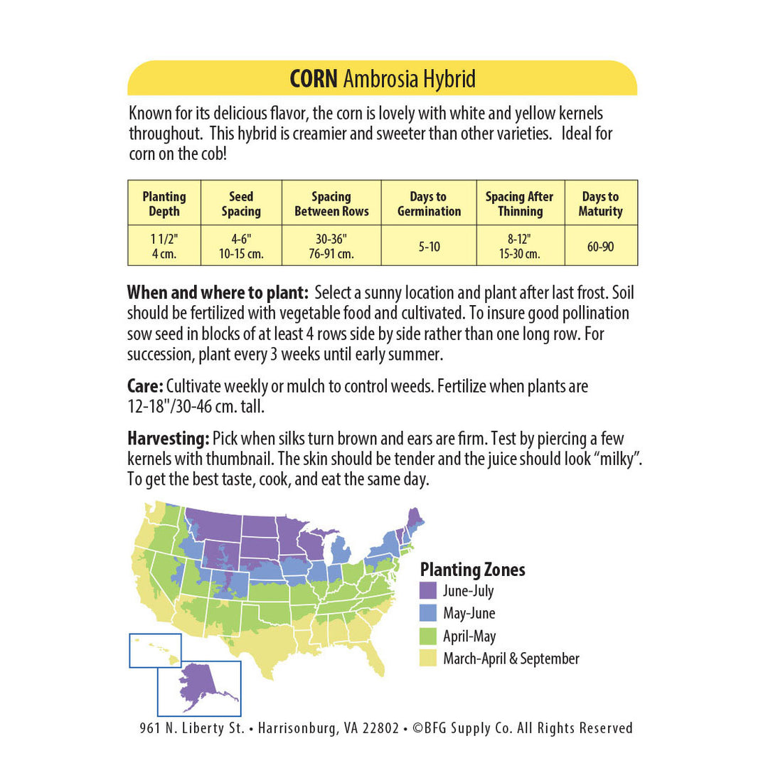 Known for its delicious flavor, the corn is lovely with white and yellow kernels throughout. This Hybrid is creamier and sweeter than other varieties. Ideal for corn on the cob!