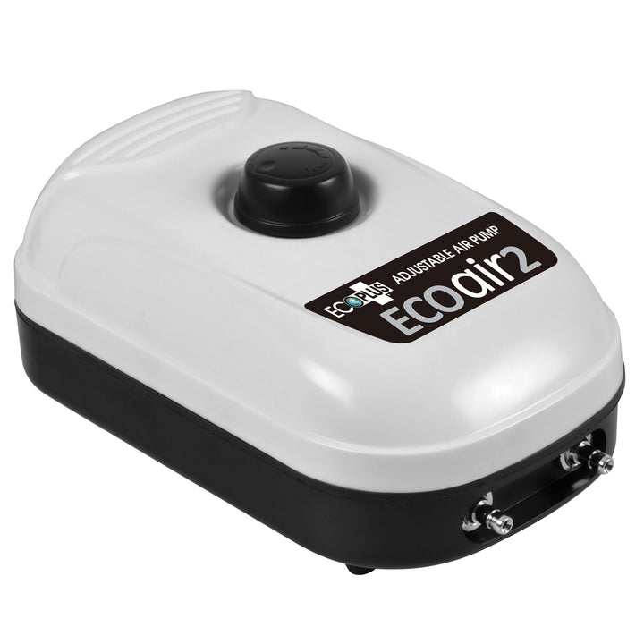 - Eco Air 2: Flow Rate: 126 GPH, Pressure: 1.5 PSI, Power: 3 Watt, Outlets: 2; Dimensions: 7.8 in. L x 5.3 in. W x3.5 in. H