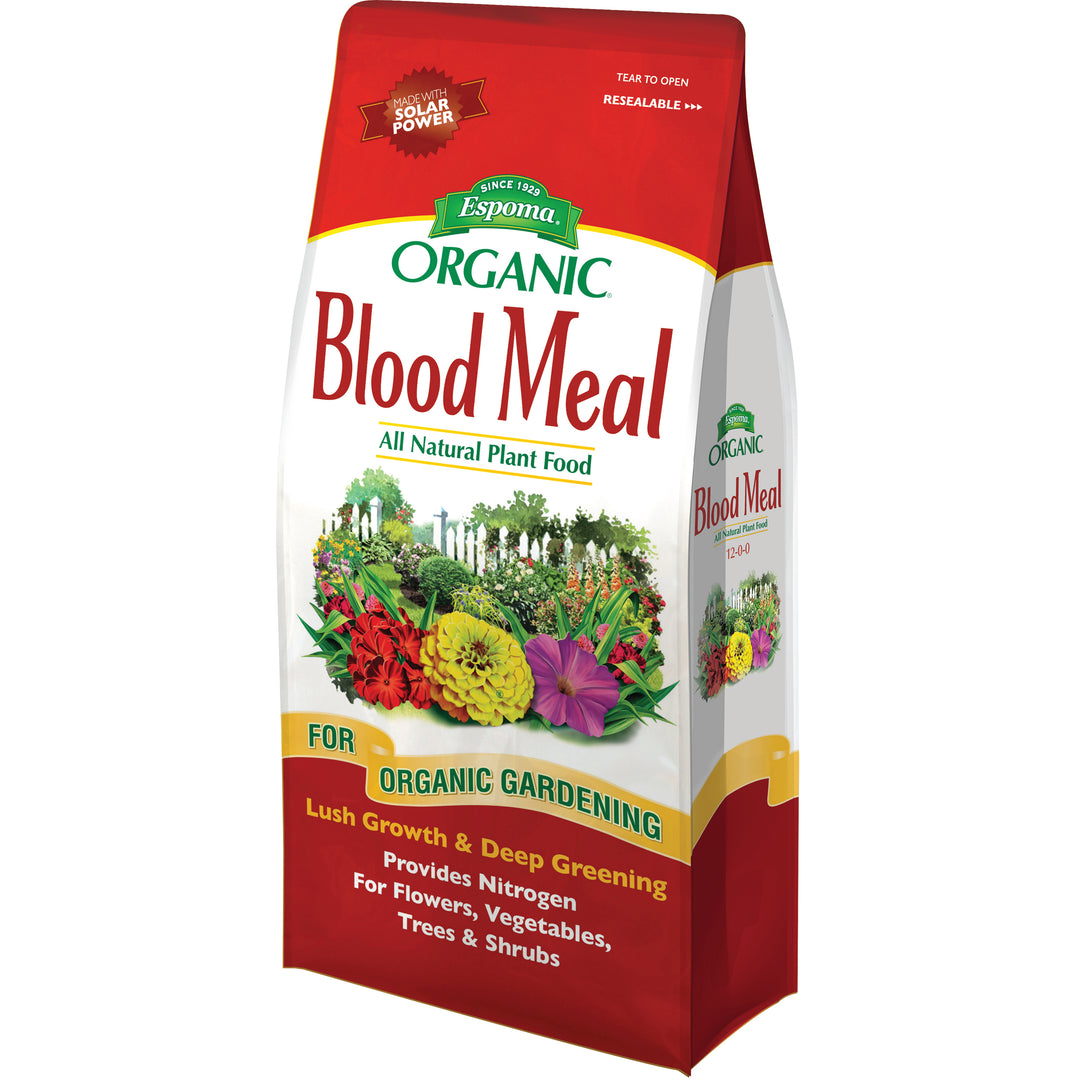 Espoma Organic Blood Meal is an all-natural, organic source of nitrogen that promotes rapid growth and deep, dark green color. It is an ideal supplement for all annuals and perennials.
